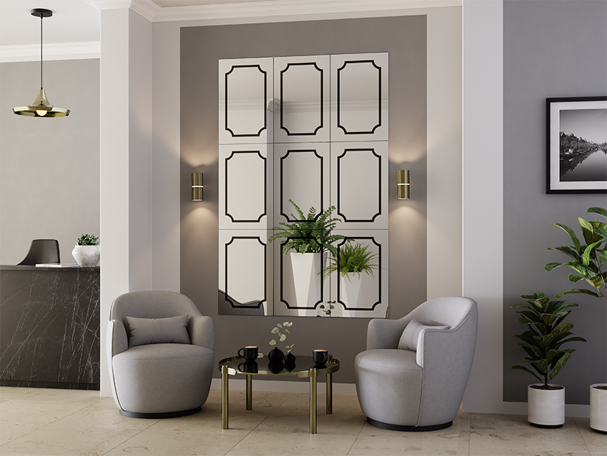 Panele dekoracyjne lustrzane to esencja nowoczesnej elegancji. Składają się z kilku mniejszych luster, które razem tworzą harmonijną całość. Czarne wzory na ich powierzchni dodają wyrafinowanego charakteru i sprawiają, że panel staje się centralnym punktem pomieszczenia. To doskonały sposób na wprowadzenie do wnętrza odrobiny luksusu i unikalnego stylu.