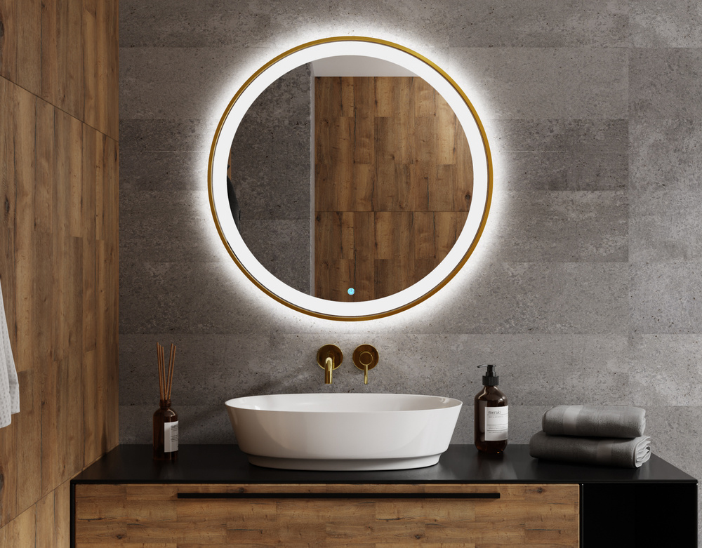 Lustro Okrągłe Ścienne w Złotej Ramie LED 50cm Włącznik Dotykowy AFR