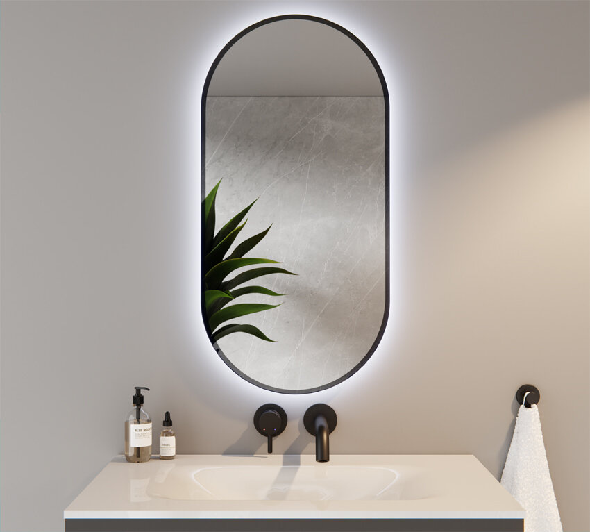Lustro Owalne LED w Czarnej Ramie OLIVIA