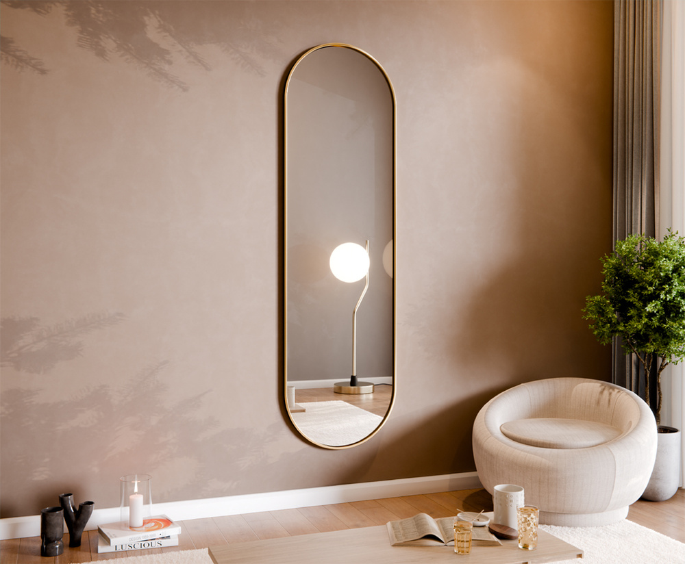 Lustro Owalne Ścienne w Ramie Aluminiowej Złotej VERA