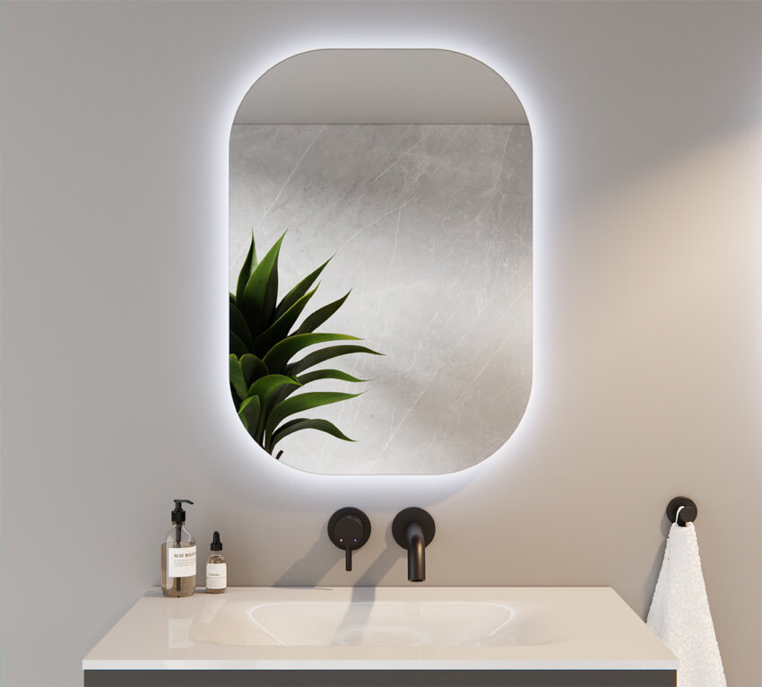 LUSTRO ZAOKRĄGLONE ROGI SZLIF PIASKOWANE LED WŁĄCZNIK DOTYKOWY OLIWIER
