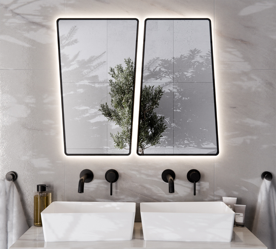 Lustro 60 x 80 cm Szkło Master Care Czarne Zaokrąglone rogi LOGAN