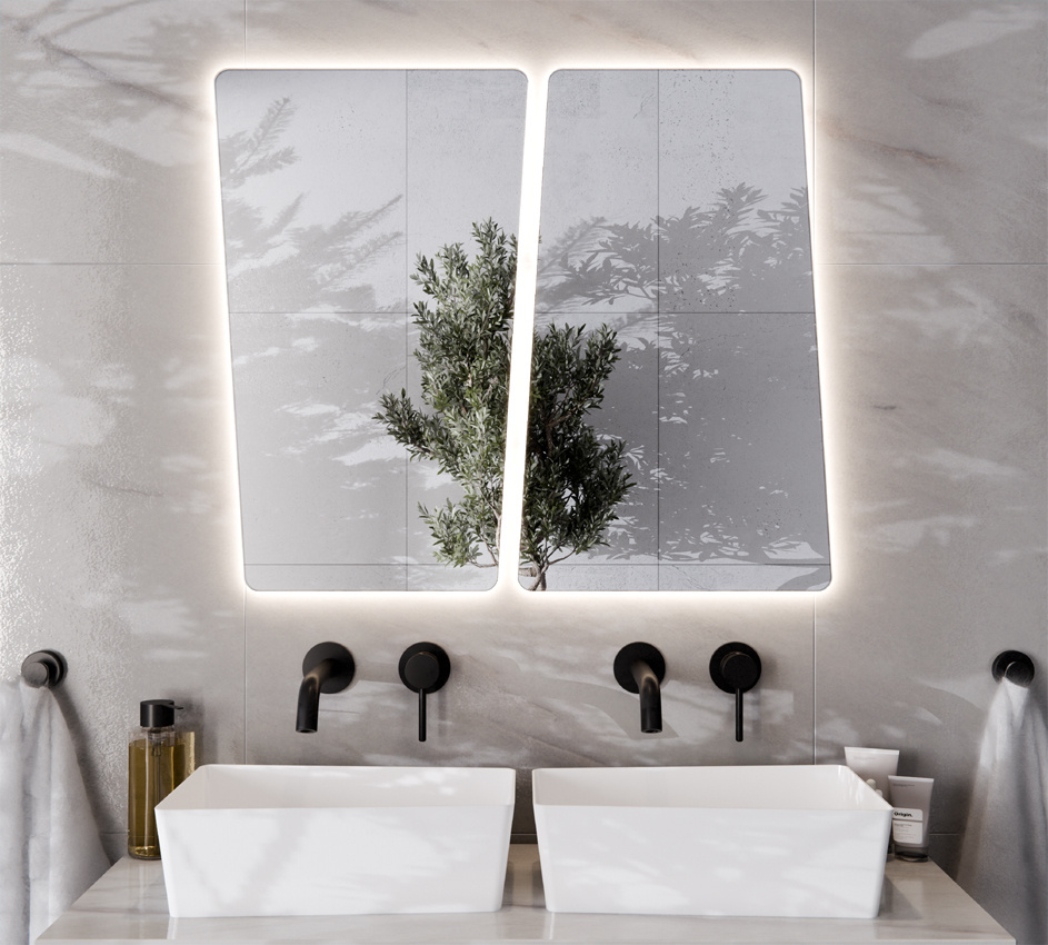 Lustro 60 x 80 cm Szkło Master Care Przejrzyste LED Zaokrąglone rogi LOGAN