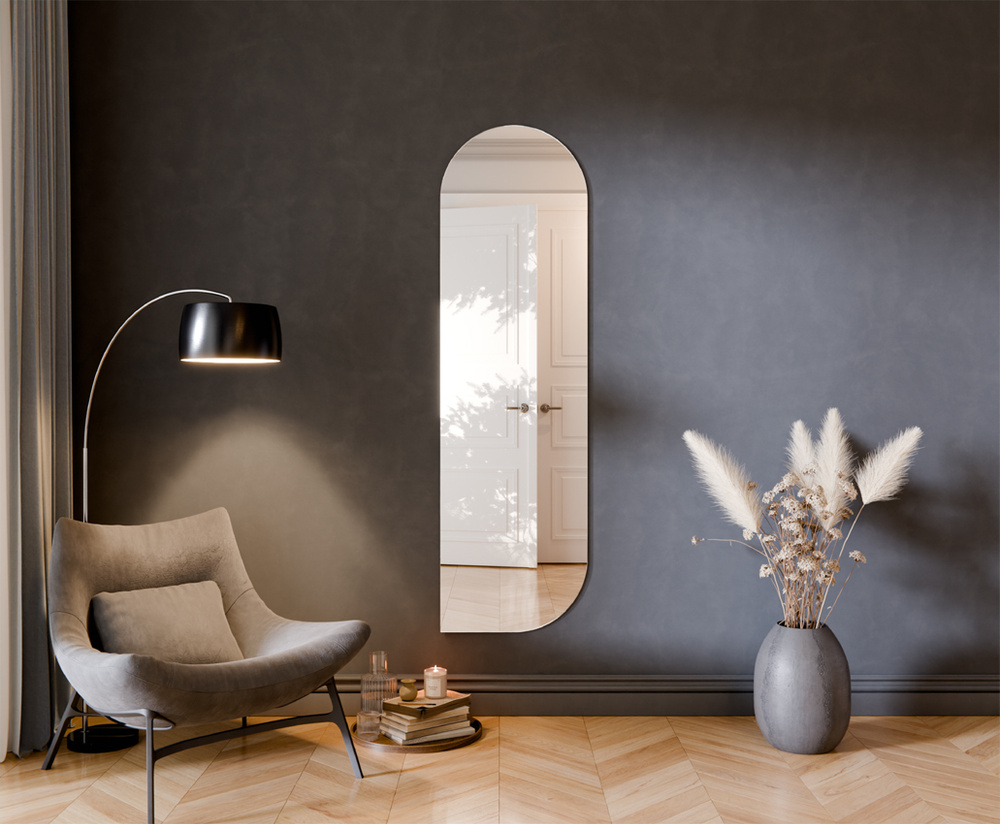 Lustro Ścięte Ścienne Szlif Wypiaskowany wzór czarny LED KELLY
