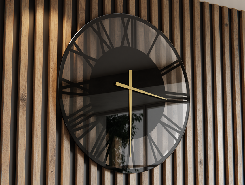Dla miłośników zdecydowanych akcentów wizualnych polecamy zegar szklany czarny z tarczą wykonaną z czarnego Lacobelu. Złote wskazówki lub cyfry w kolorze kontrastującym z tłem tworzą kompozycję, która przyciąga wzrok i nadaje pomieszczeniu ekskluzywnego charakteru. To wybór idealny do salonów, gabinetów, a także designerskich przestrzeni biurowych.